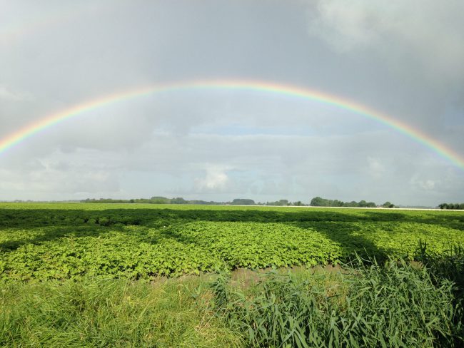 Regenboog gezien vanaf Eekwerderweg, Eenum – kijkend in de richting van Loppersum. Deze foto is gemaakt door Elroly te Nijenhuis.