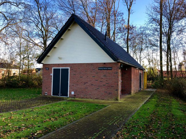 Aula gemeentelijke begraafplaats Stedum. De Aula bij de gemeentelijke begraafplaats aan de Stationsweg te Stedum. Het is sinds oktober 2010 in het bezit gekomen van Stichting Historie Stedum en nu in gebruik als hun clubgebouw. De foto is in 2018 gemaakt door Jan Lalkens.