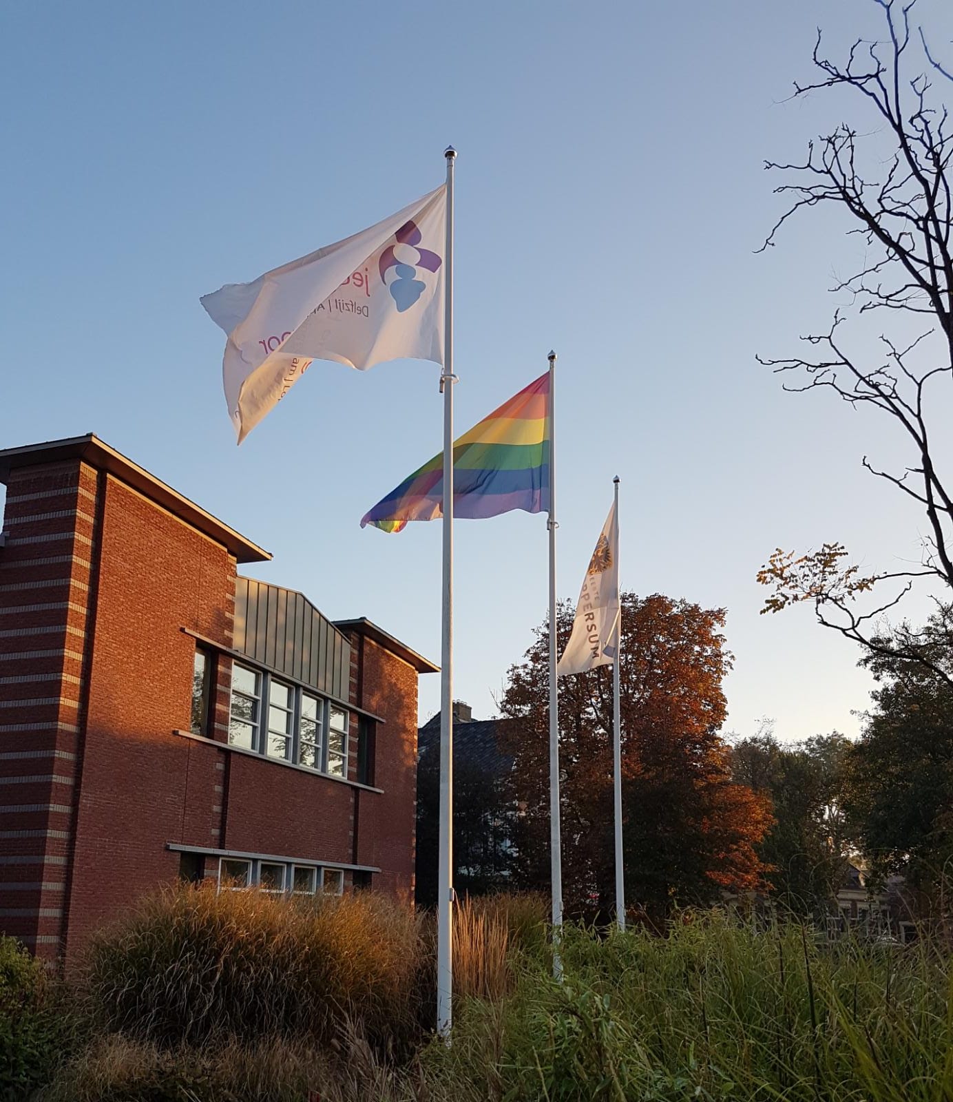 Tijdens Coming Out Day in november 2018 ging de regenboogvlag uit.