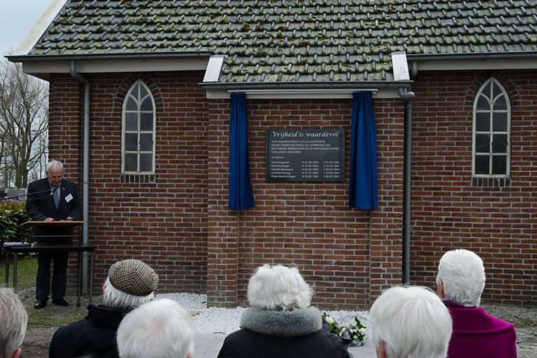 Onthulling gedenksteen oorlogsslachtoffers Stedum op 30 maart 2012. De foto is gemaakt door Jan-jaap Aue.