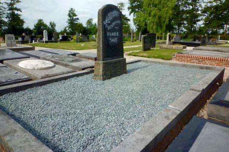 Door de Stichting Historie Stedum, werkgroep begraafplaatsproject, gerestaureerd familiegraf. Dit graf is van Jan Hendriks Smit die rond 1900 woonde op kloosterboerderij no.66, huidig adres: Bedumerweg 45, Stedum.