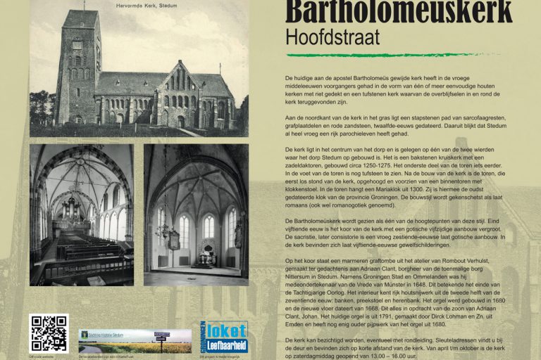 Het ontwerp en de opmaak van het bord zijn gemaakt door Carola Kruidhof. De foto’s komen uit de beeldbank van Stichting Historie Stedum.