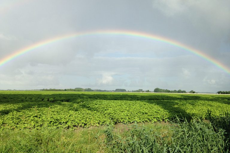 Regenboog gezien vanaf Eekwerderweg, Eenum – kijkend in de richting van Loppersum. Deze foto is gemaakt door Elroly te Nijenhuis.