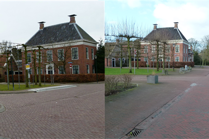 Foto van voor-en na herinrichting van een straatbeeld in Middelstum