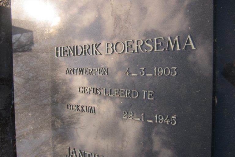 Hendrik Boersema was gemeentesecretaris te Stedum. Hij werd begin 1945 gearresteerd. De reden voor zijn aanhouding was vanwege ‘principiële werkweigering voor de Duitsers’. Als represaille voor een bevrijdingsactie van het verzet in De Valom in Friesland, waarbij onder andere een topman van de SD omkwam, is Boersema samen met 19 andere gevangenen uit Groningen en Friesland gefusilleerd aan de Woudweg bij Dokkum.