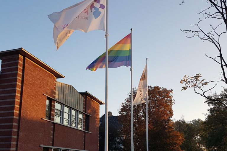 Tijdens Coming Out Day in november 2018 ging de regenboogvlag uit.