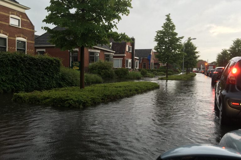 Wolkbreuk op de Molenweg in Loppersum, 13 juni 2016.