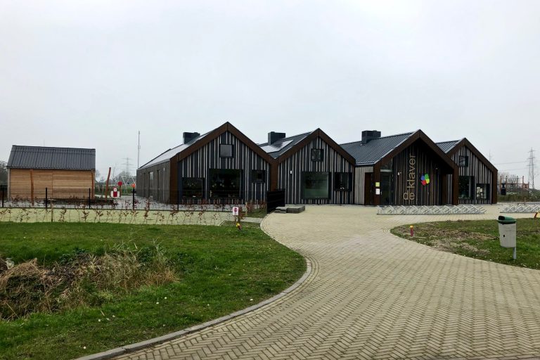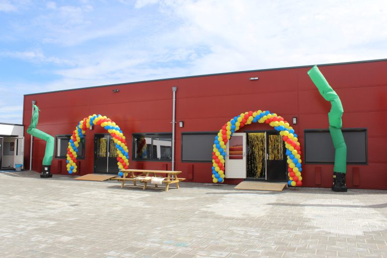 CBS Roemte, OBS Prinses Beatrix, Kids2b (dagopvang, naschoolse opvang ,peuterspeelzaal Prügelhorn) uit Loppersum zijn samen in een tijdelijk gebouw ondergebracht aan de Bosweg (achter de Boshal). Dit vanwege de aardbevingsproblematiek. Foto is van 26 juni 2015.