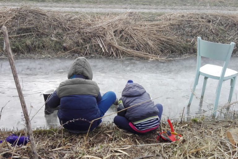 Twee kindjes op het ijs bij Zijldijk. Deze foto is gemaakt door Maartje Kiep