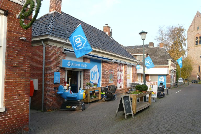 Oude Albert Heijn in Loppersum aan de Hogestraat (2014), nu een plein.