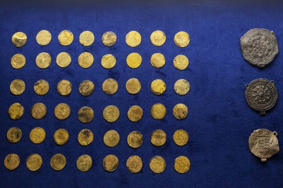 De gouden muntenschat die in het najaar van 2016 in de Lopster bodem is gevonden, werd tijdens Lente in Loppersum in de raadzaal van het gemeentehuis tentoongesteld.